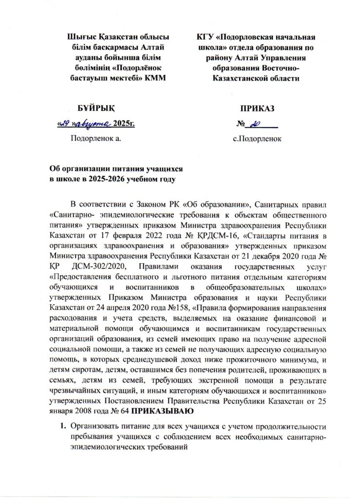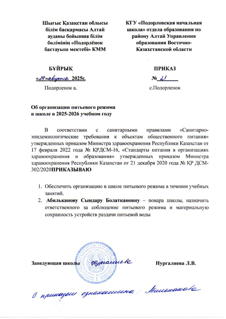 Аналитическая справка по результатам внутреннего анализа коррупционных рисков в деятельности КГУ «Подорловская начальная школа» отдела образования по району Алтай УО ВКО
